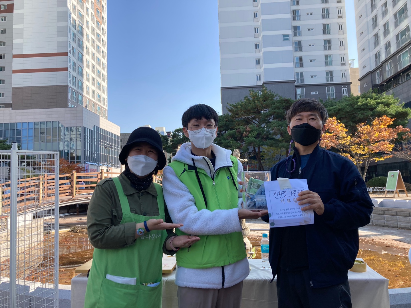 이번 행사 자체가 쓰레기를 발생시키지 않는 제로웨이스트를 목표로 행사장 내 폐현수막 재활용 안내판이 사용되었으며, 우유팩 5개를 모아오는 화장지 1롤을 보상해주는 코너와 개인장터 참여자들은 재활용 박스를 활용한 간판 경진대회도 펼쳐져 생활속 새활용 실천을 자연스럽게 유도해 보았습니다. 별도로 프리하당 수익금과 기부금은 불우한 이웃들이 따뜻한 명절을 보낼 수 있도록 아름다운가게 나눔보따리 배달 사업에 사용될 예정입니다.