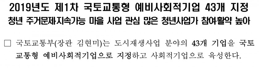 2019년도 제1차 국토교통형 예비사회적기업 43개 지정.pdf (358.8K)