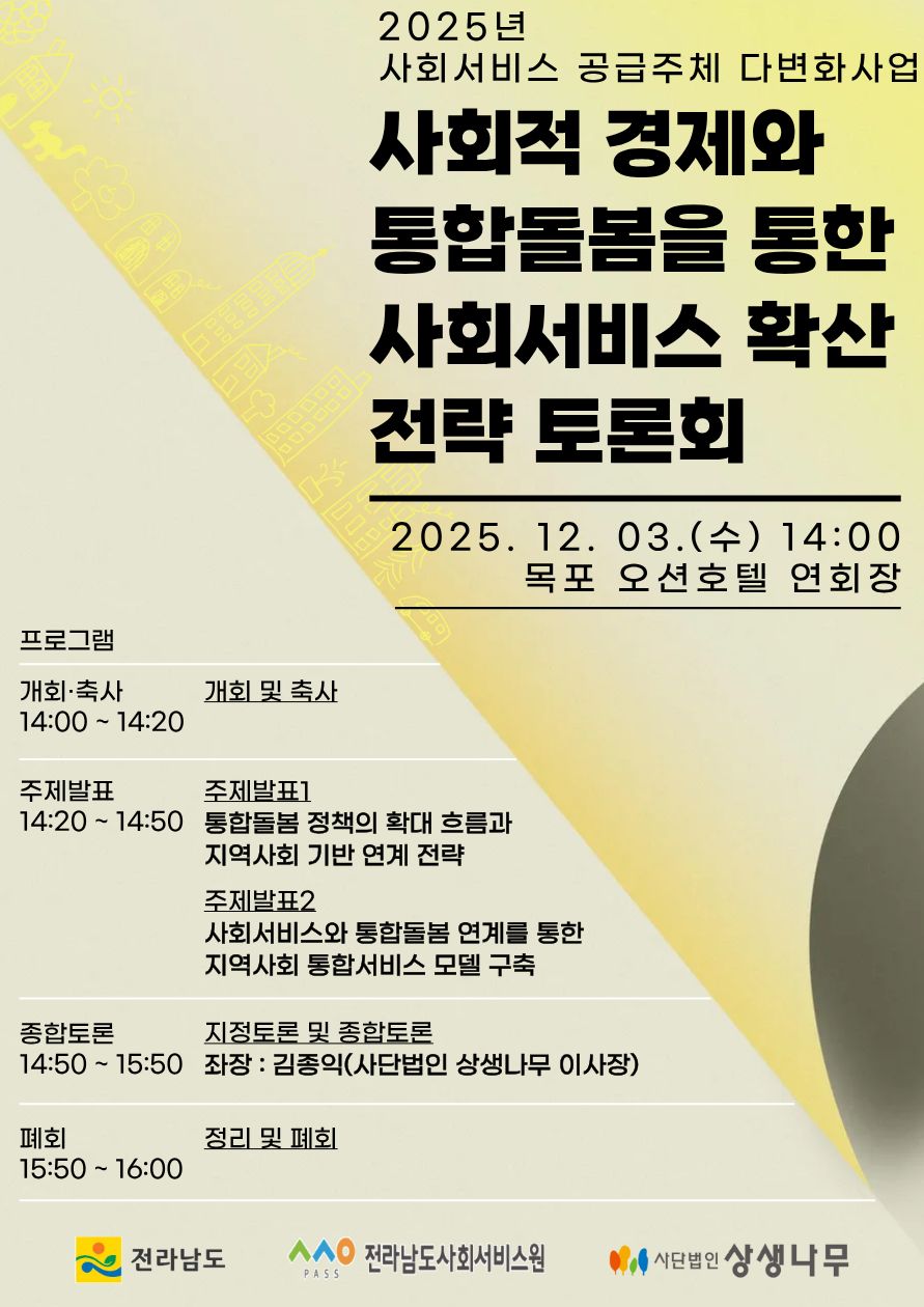 2025년 사회서비스 공급주체 다변화사업 「사회적 경제와 통합돌봄을 통한 사회서비스 확산 전략 토론회」개최